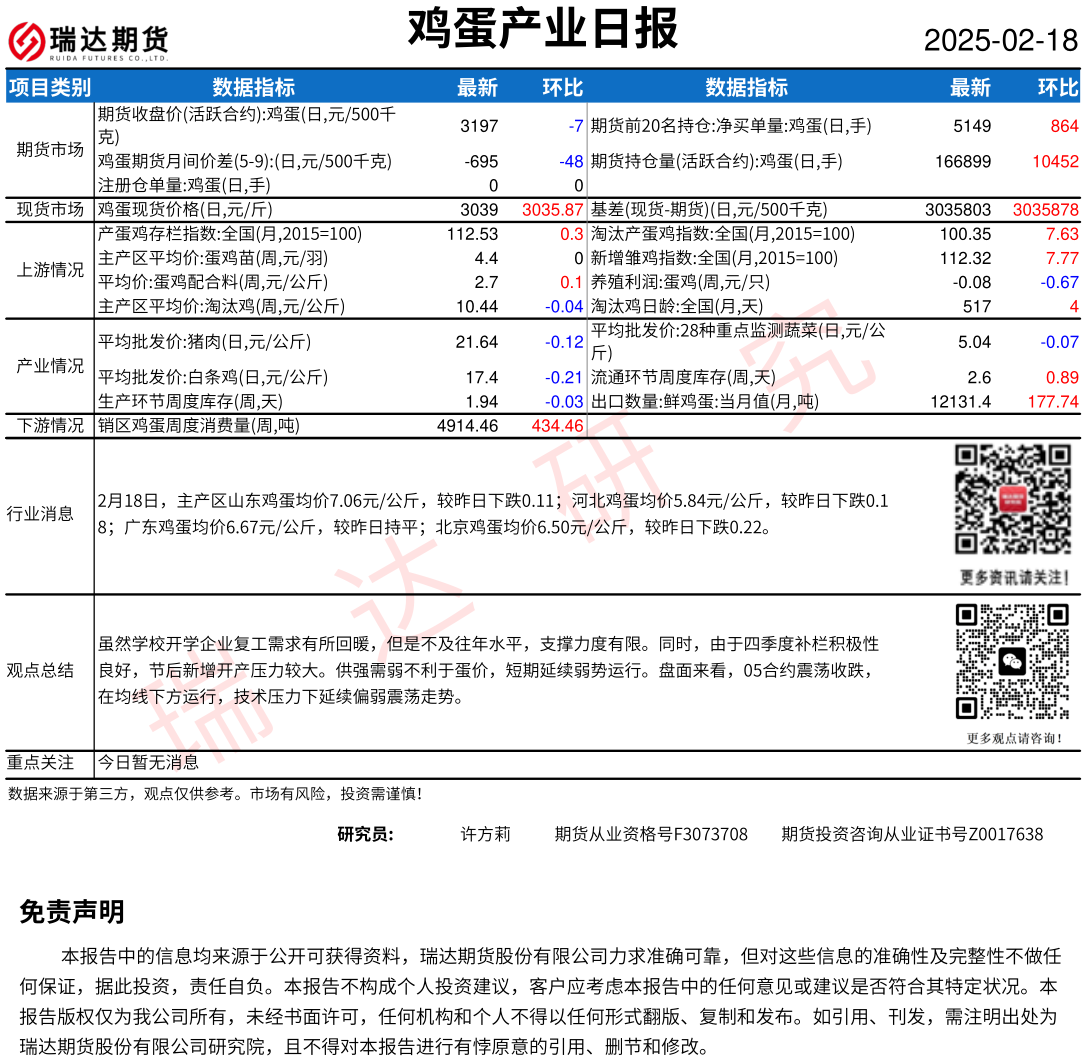 2026-02-12瑞达期货鸡蛋产业日报20260212