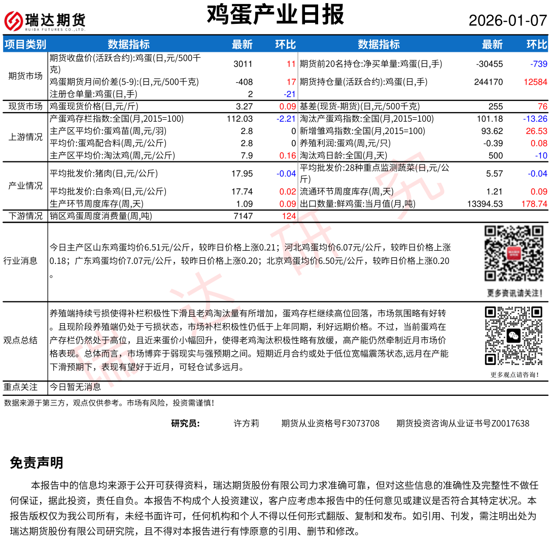 2026-01-08瑞达期货鸡蛋产业日报20260108