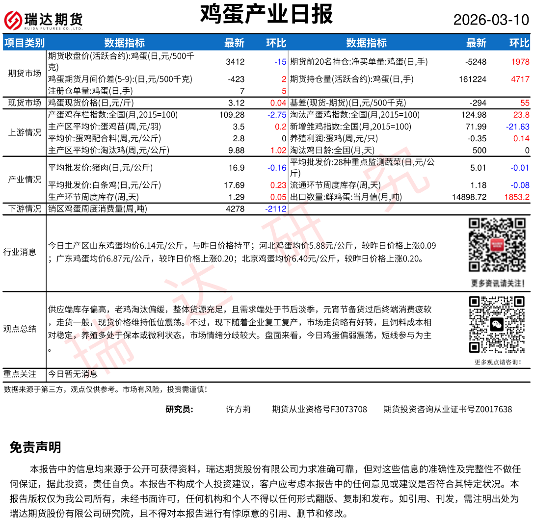 2026-03-10瑞达期货鸡蛋产业日报20260310