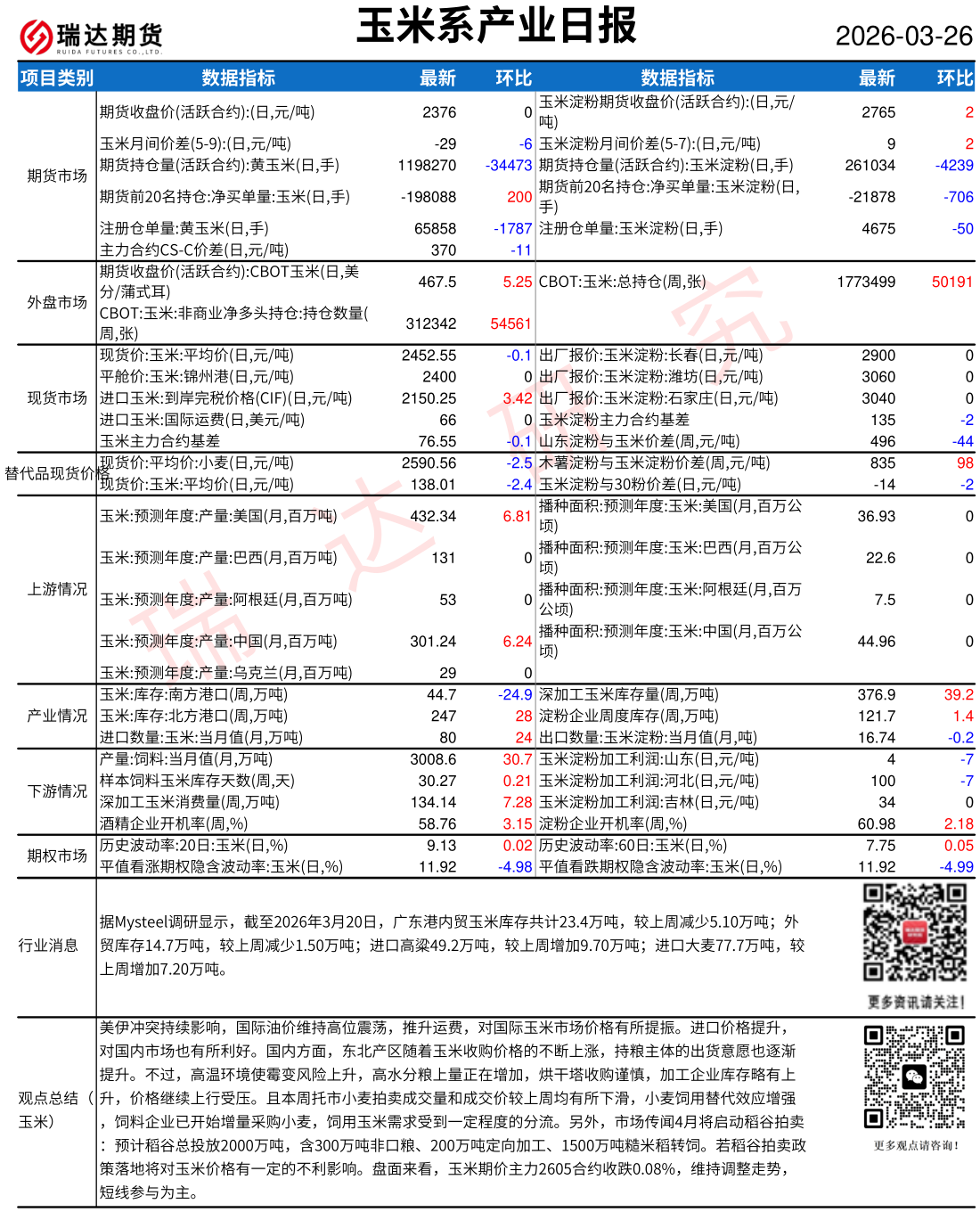 2026-04-16瑞达期货玉米系产业日报20260416