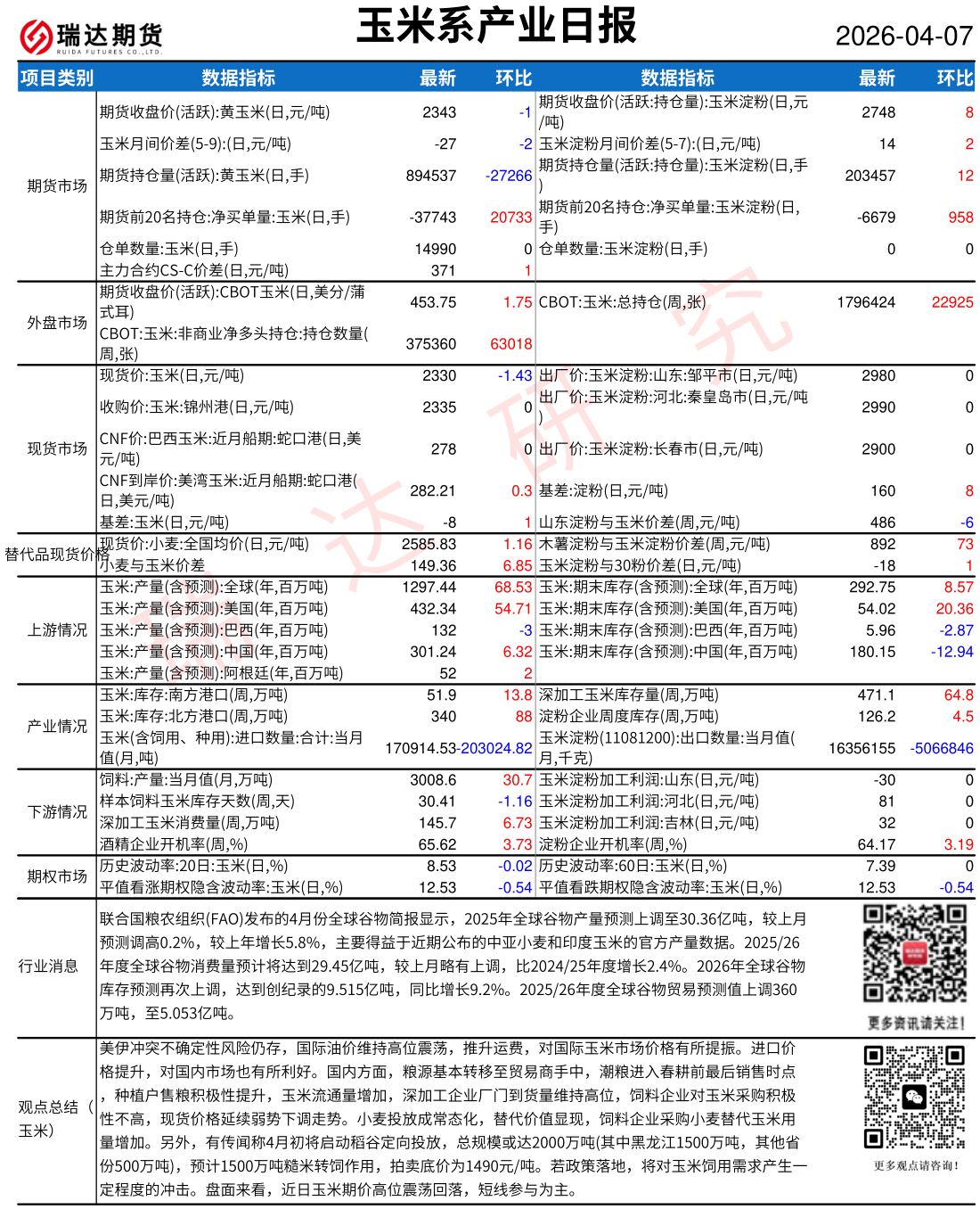 2026-04-16瑞达期货玉米系产业日报20260416