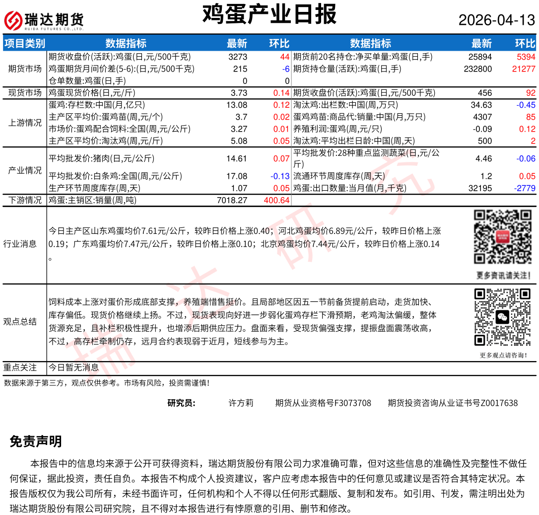 2026-04-13瑞达期货鸡蛋产业日报20260413