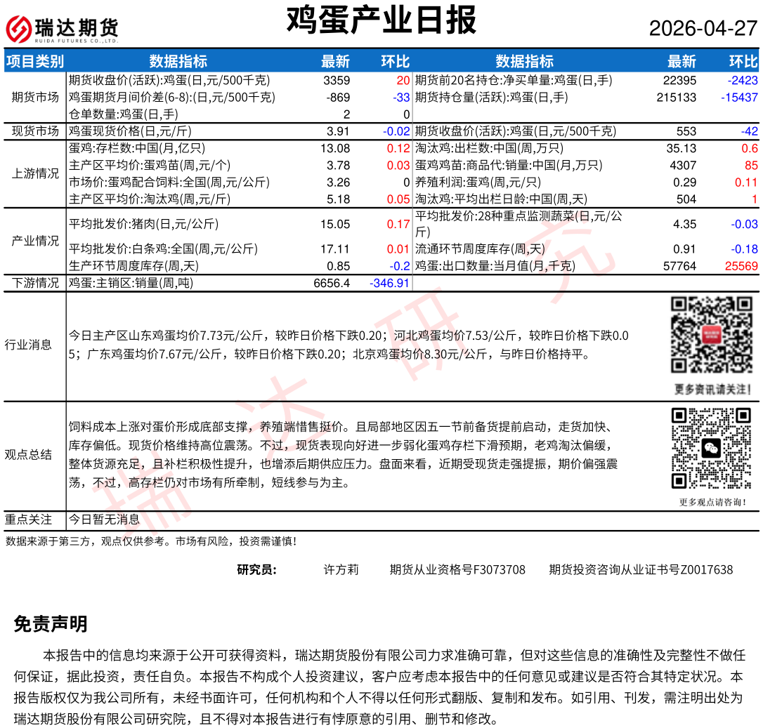 2026-04-27瑞达期货鸡蛋产业日报20260427