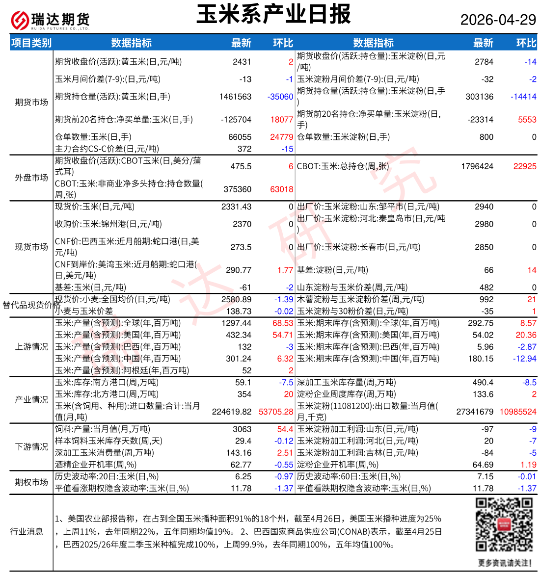 2026-04-29瑞达期货玉米系产业日报20260429