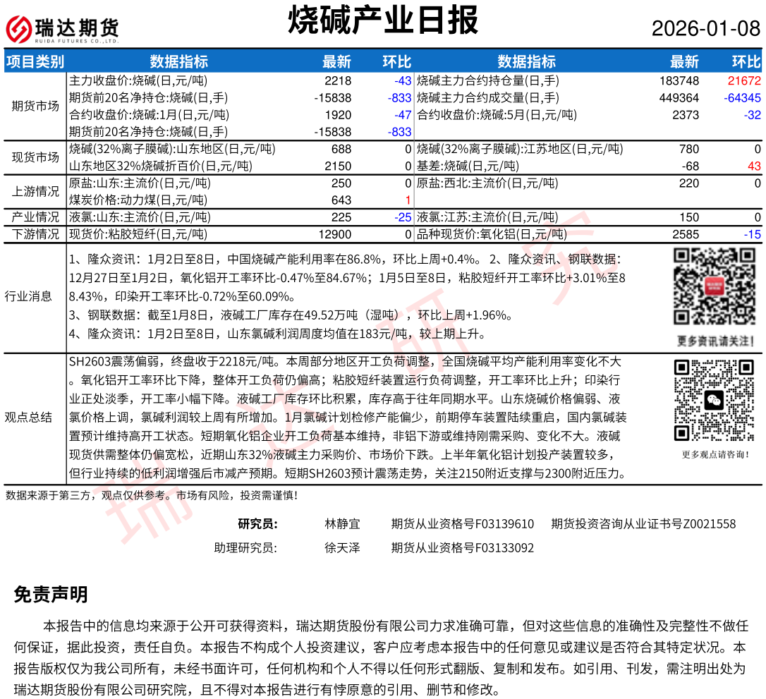 2026-01-09瑞达期货烧碱产业日报20260108