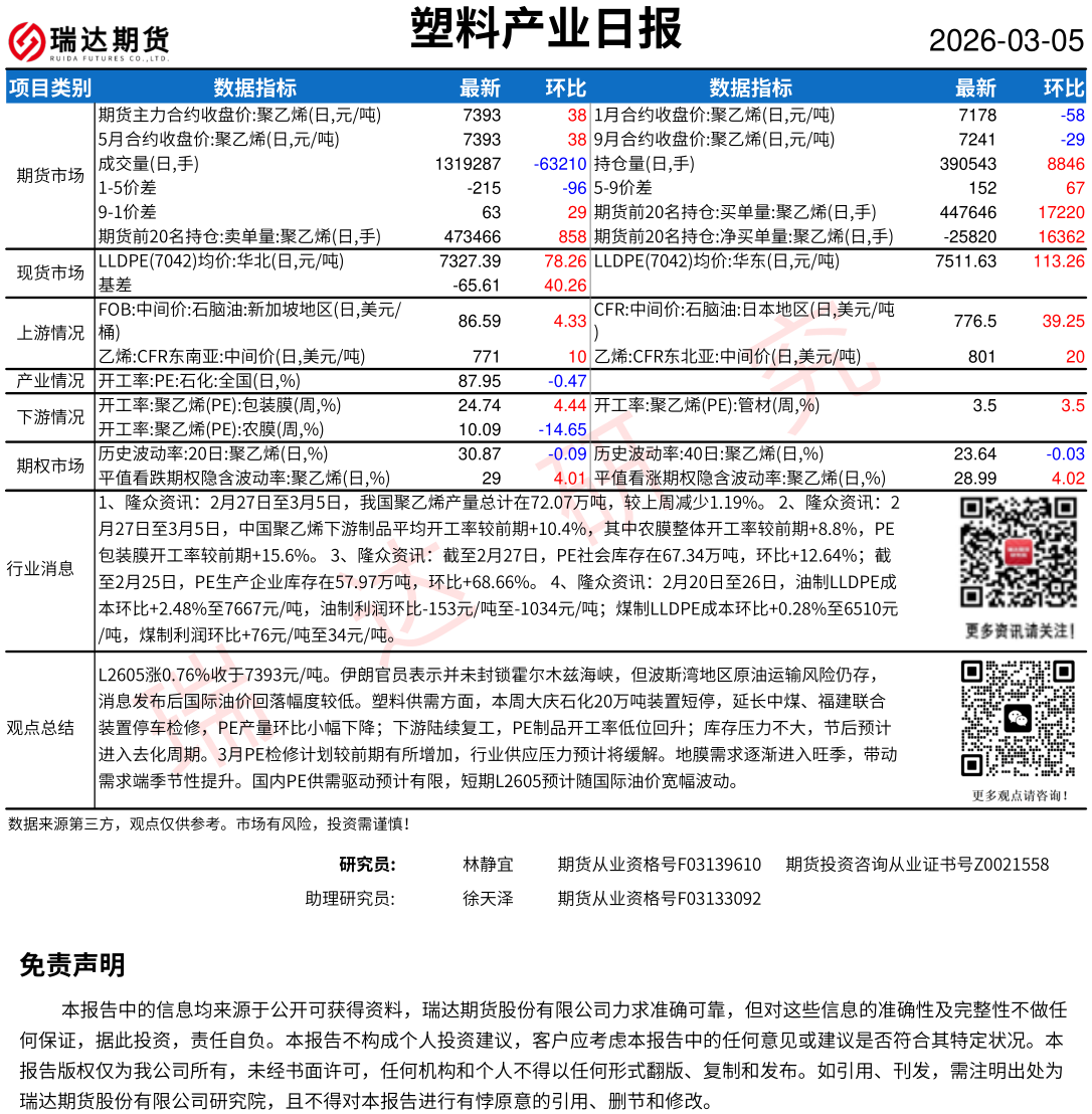 2026-03-06瑞达期货塑料产业日报20260305