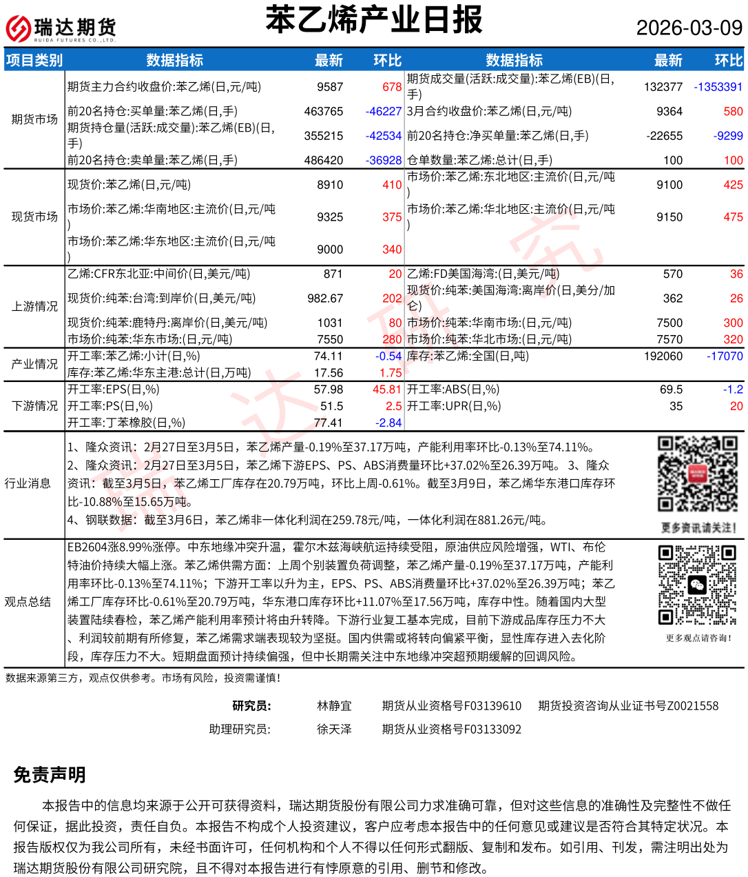 2026-03-09瑞达期货塑料产业日报20260309