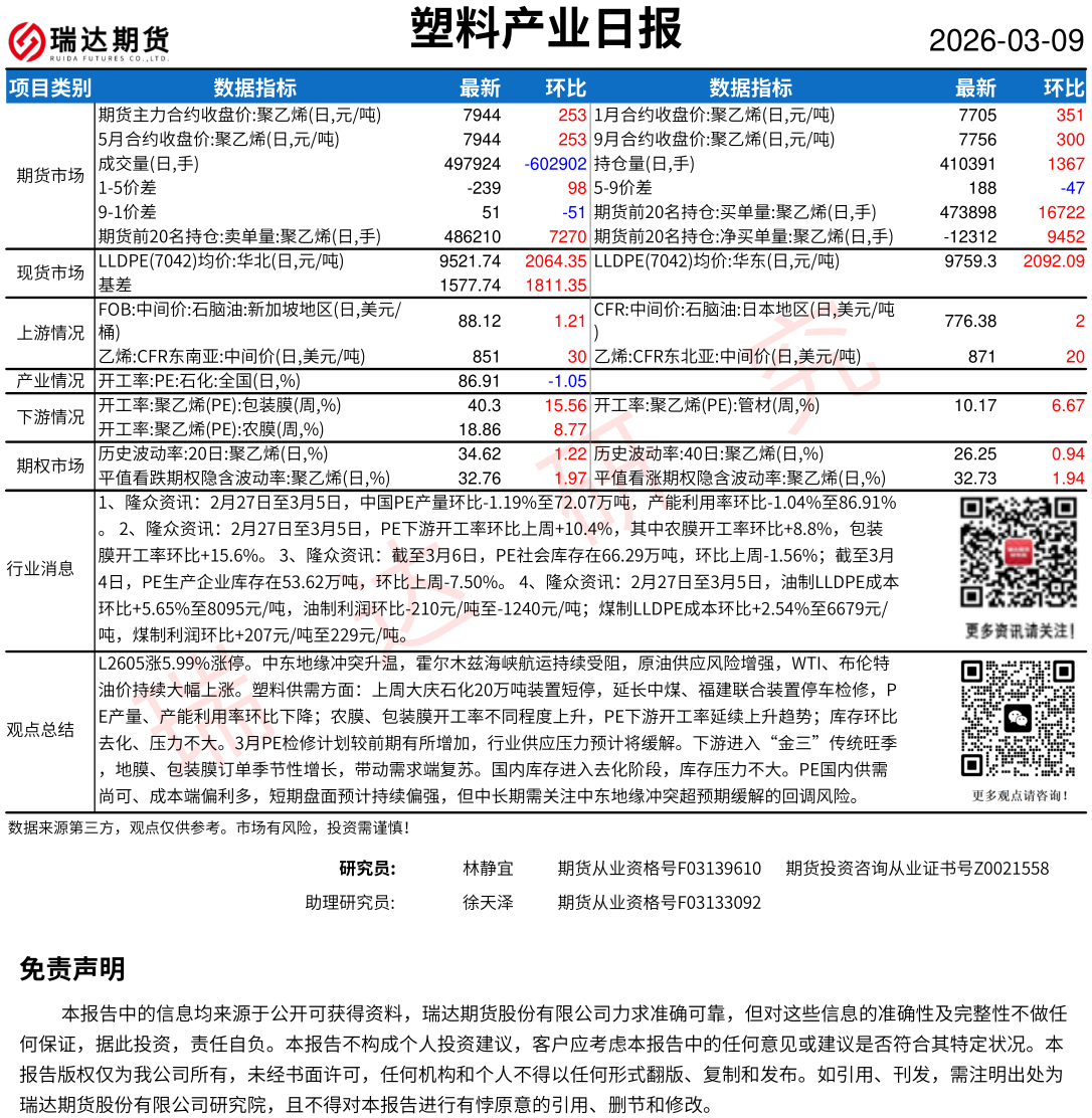 2026-03-09瑞达期货塑料产业日报20260309