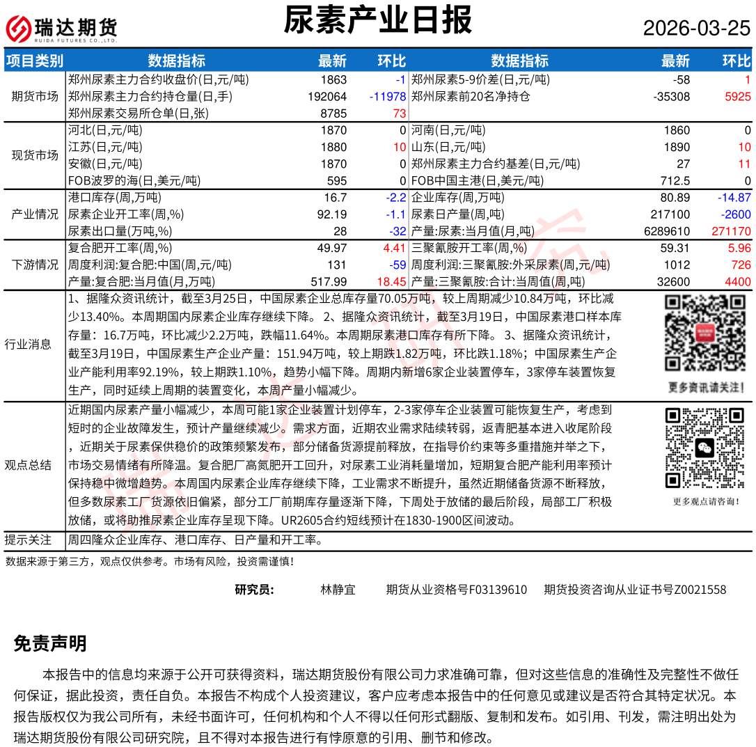 2026-03-26瑞达期货尿素产业日报20260326