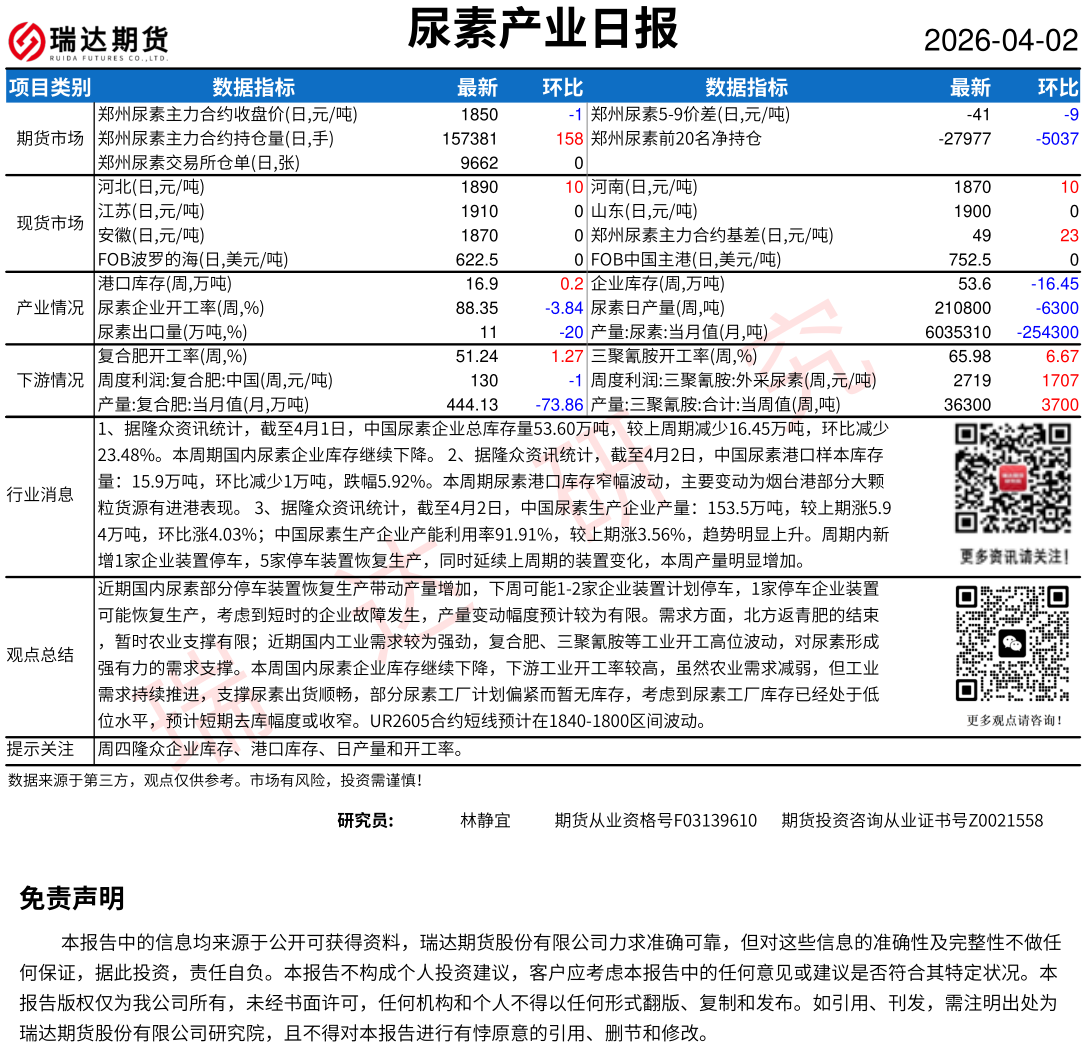 2026-04-16瑞达期货尿素产业日报20260416