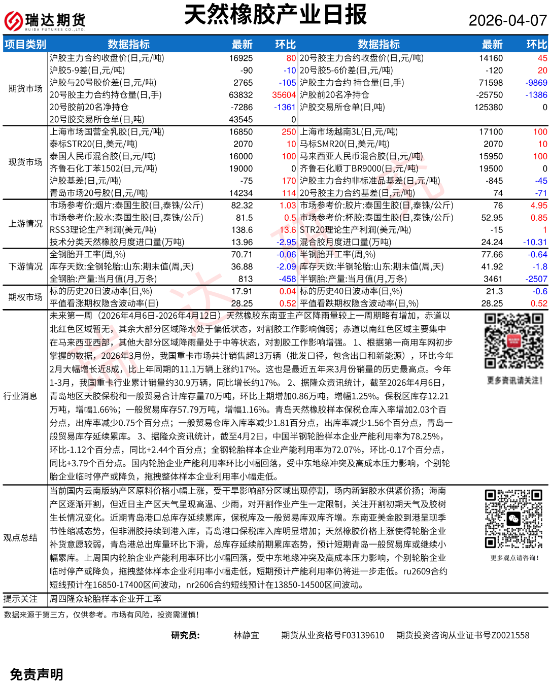2026-04-16瑞达期货天然橡胶产业日报20260416