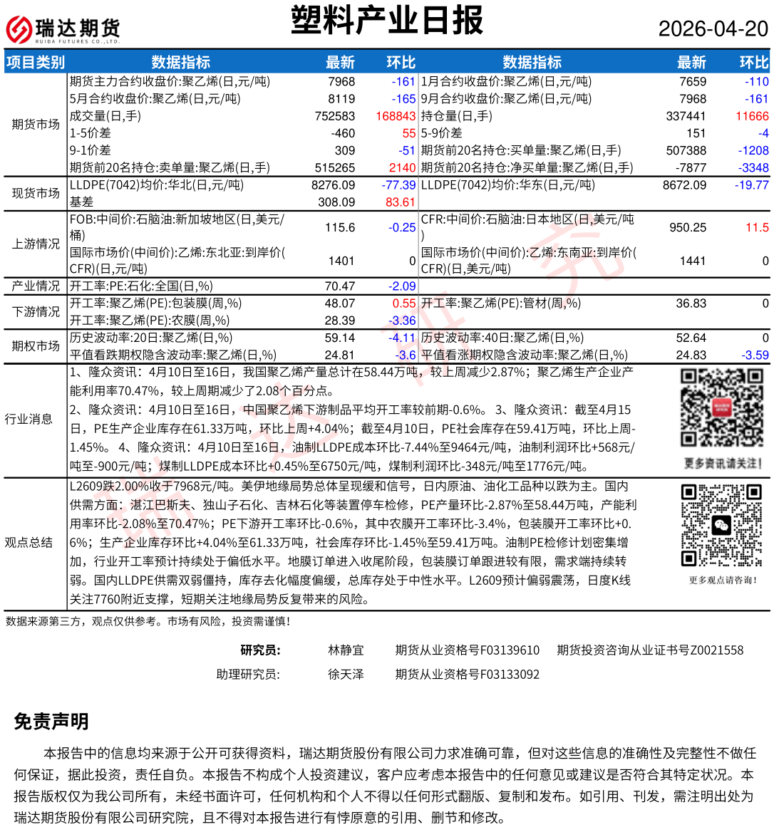 2026-04-20瑞达期货塑料产业日报20260420