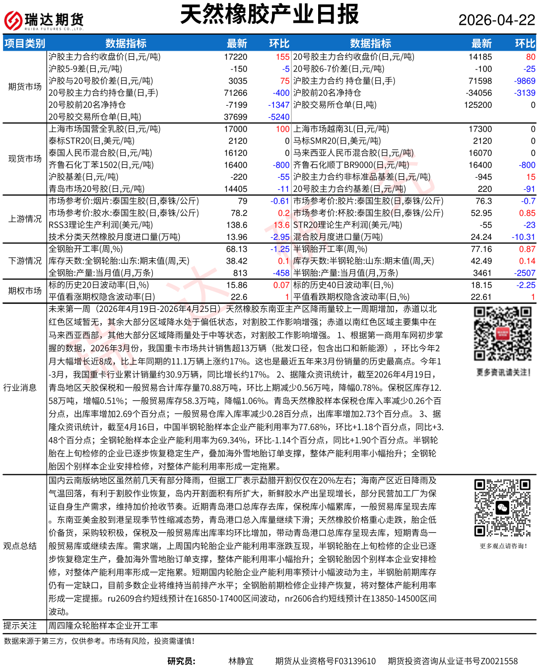 2026-04-22瑞达期货天然橡胶产业日报20260422