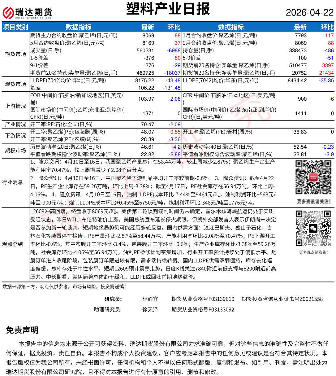 2026-04-23瑞达期货塑料产业日报20260422