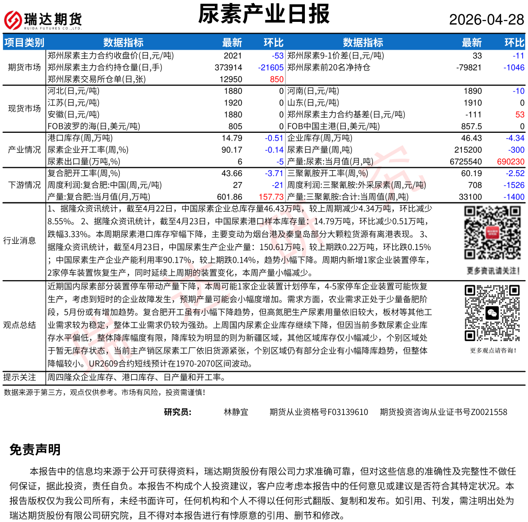 2026-04-28瑞达期货尿素产业日报20260428