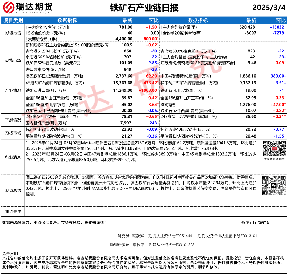 2025-12-23瑞达期货铁矿石产业日报20251223