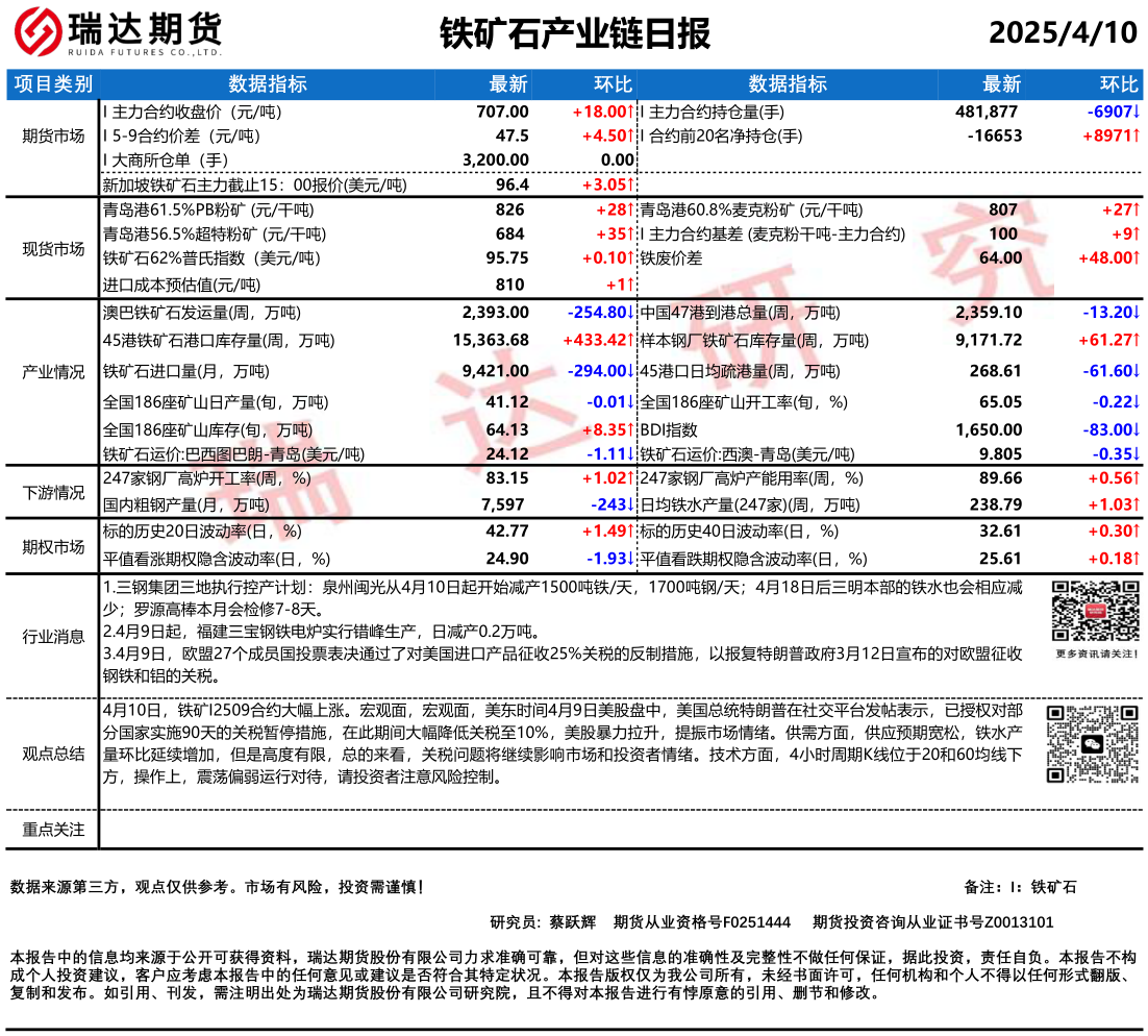 2025-12-23瑞达期货铁矿石产业日报20251223