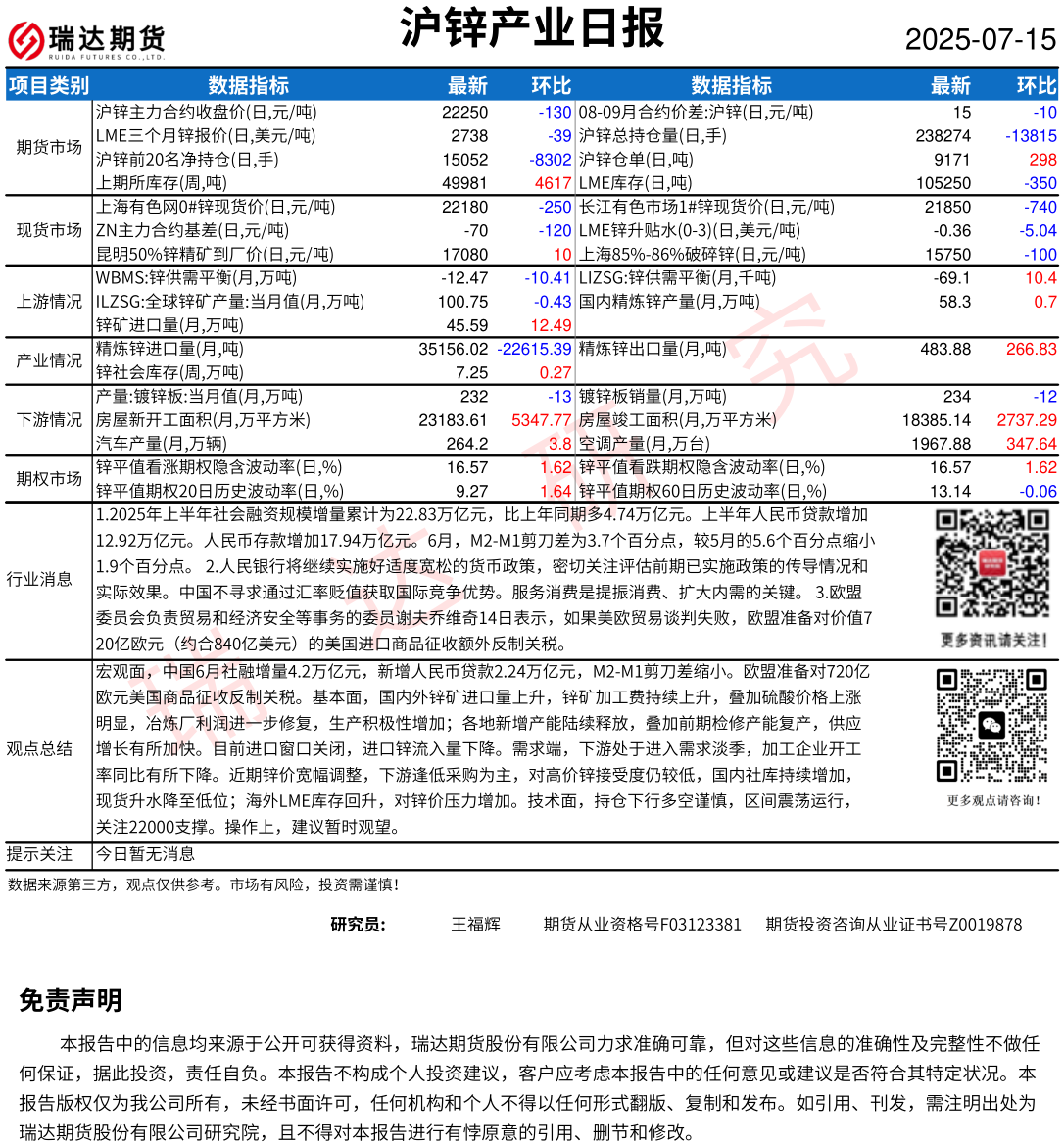 2025-12-19瑞达期货沪锌产业日报20251218