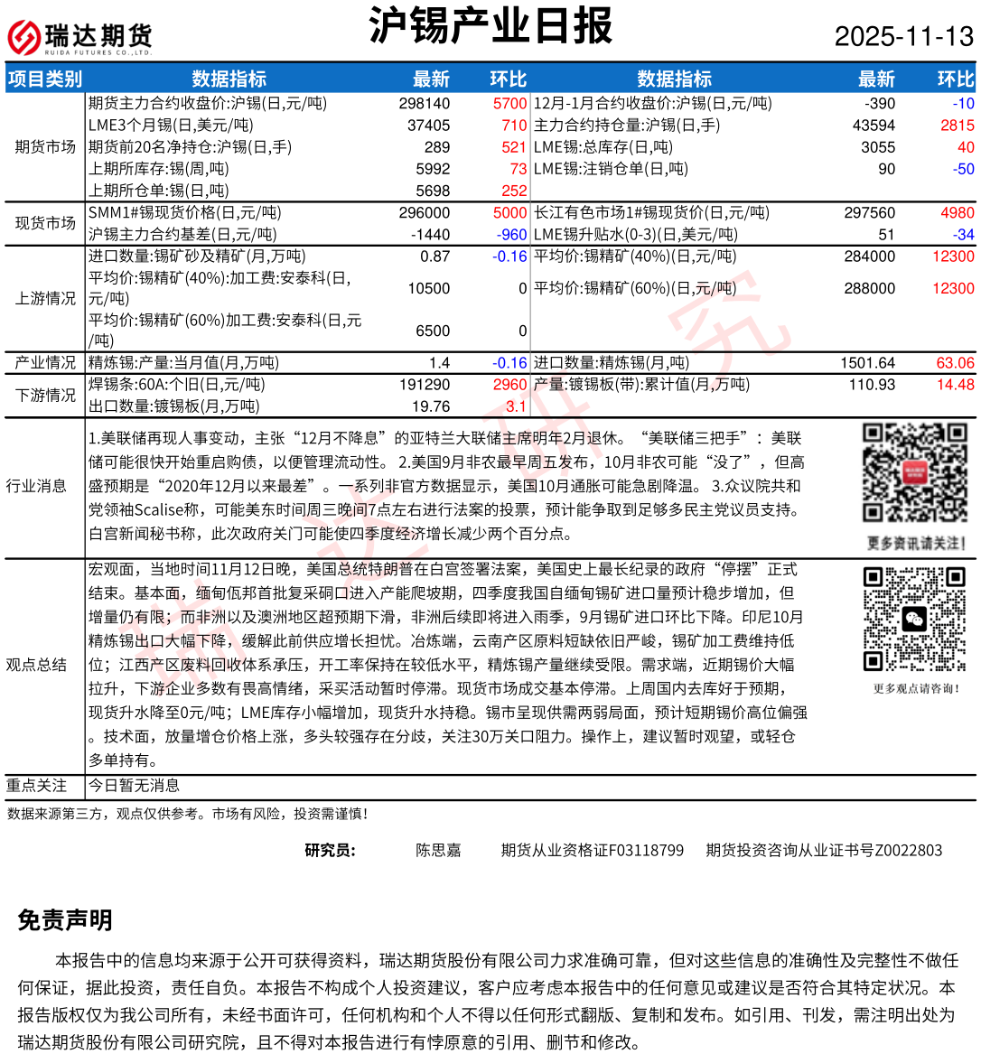 2025-12-19瑞达期货沪锡产业日报20251218