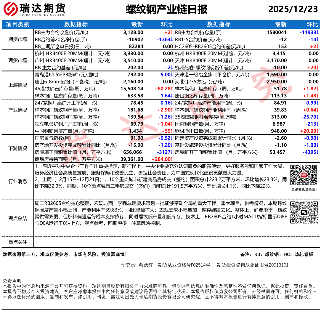 2025-12-23瑞达期货热卷产业日报20251223