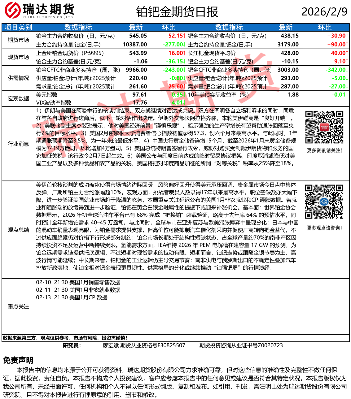 2026-02-12瑞达期货铂钯金市场每日全景分析报告 20260212
