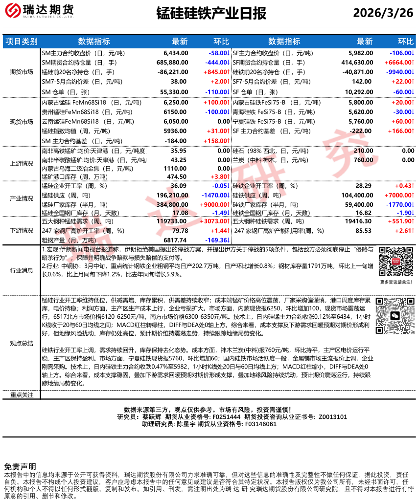 2026-04-16瑞达期货锰硅硅铁产业日报20260416