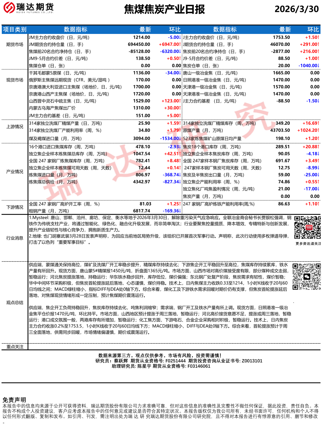 2026-04-16瑞达期货焦煤焦炭产业日报20260416