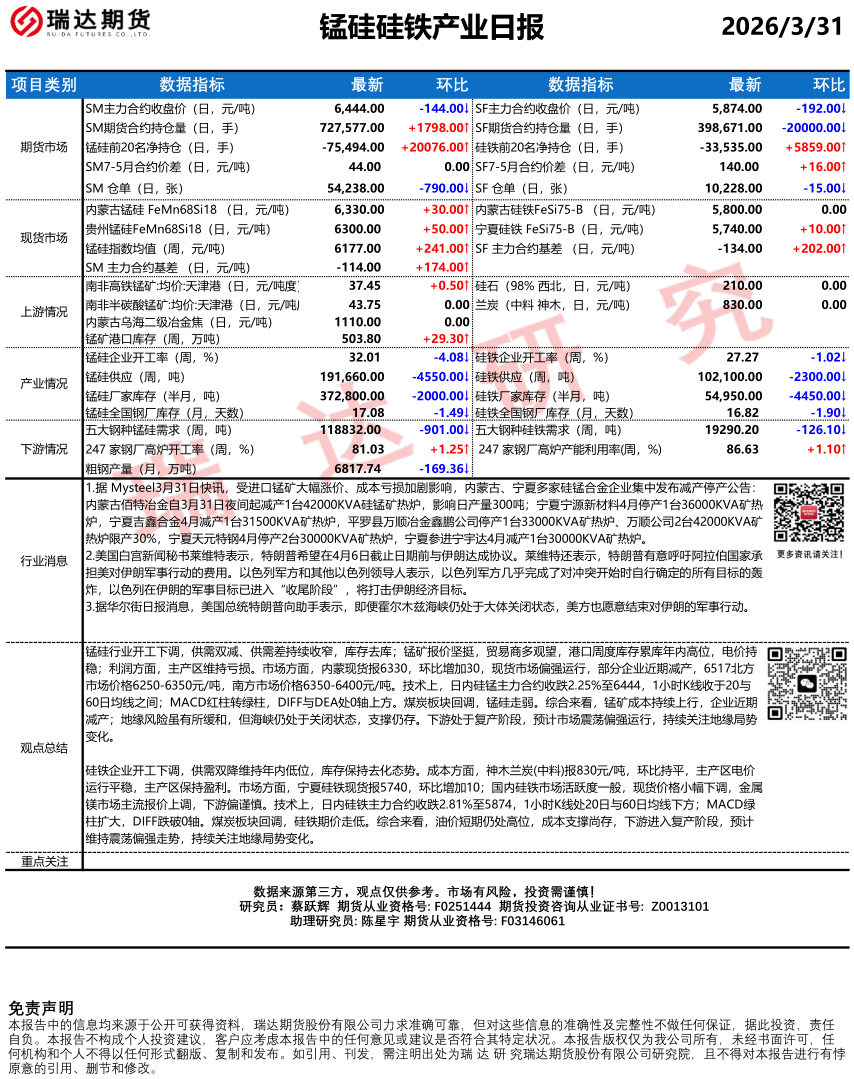 2026-04-16瑞达期货锰硅硅铁产业日报20260416