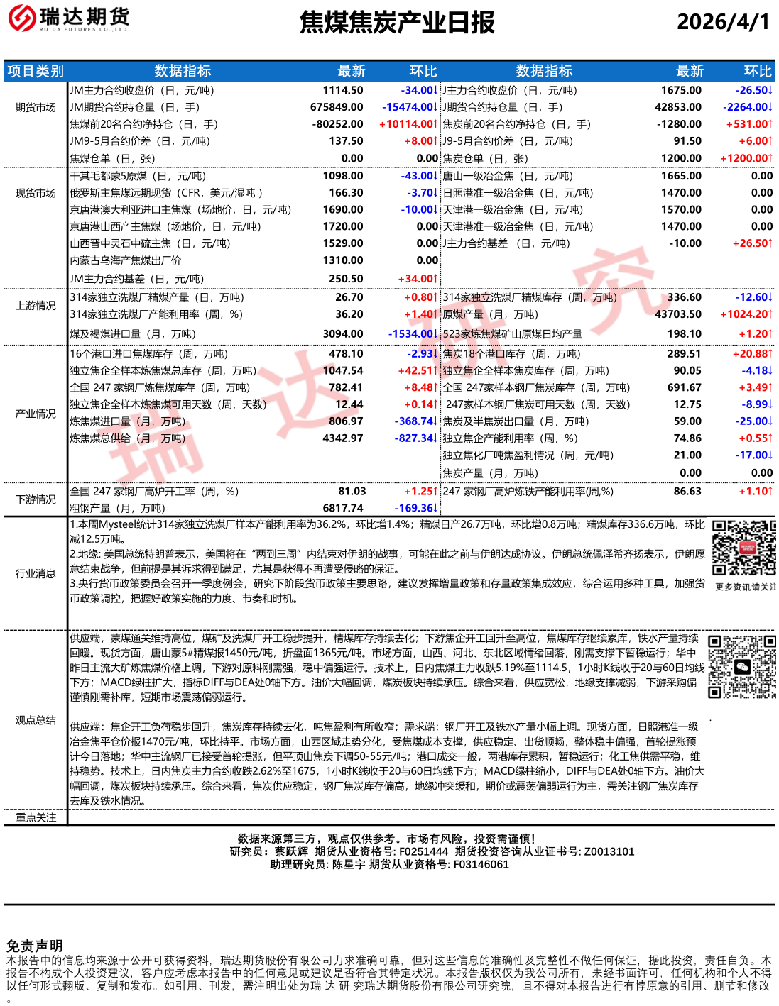 2026-04-16瑞达期货焦煤焦炭产业日报20260416