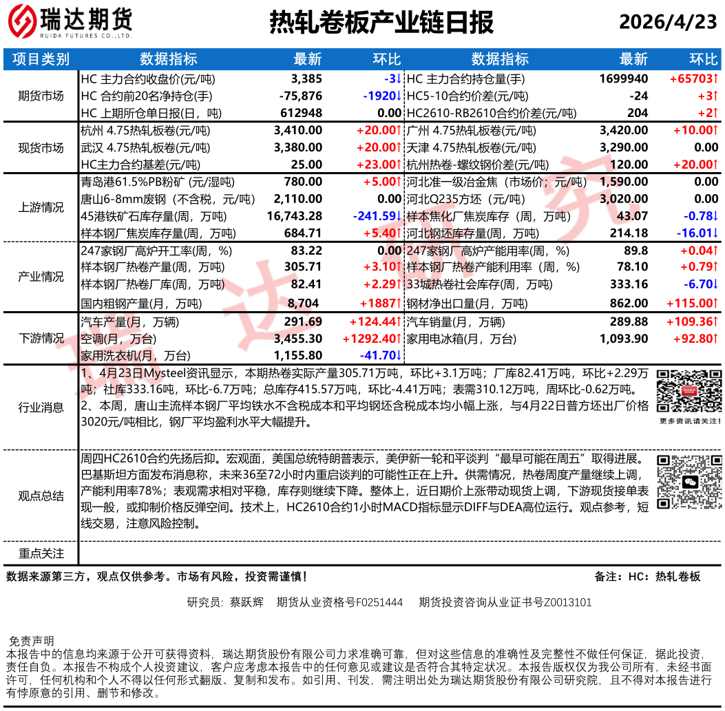 2026-04-23瑞达期货铁矿石产业日报20260423
