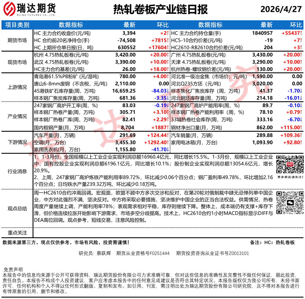 2026-04-28瑞达期货铁矿石产业日报20260427