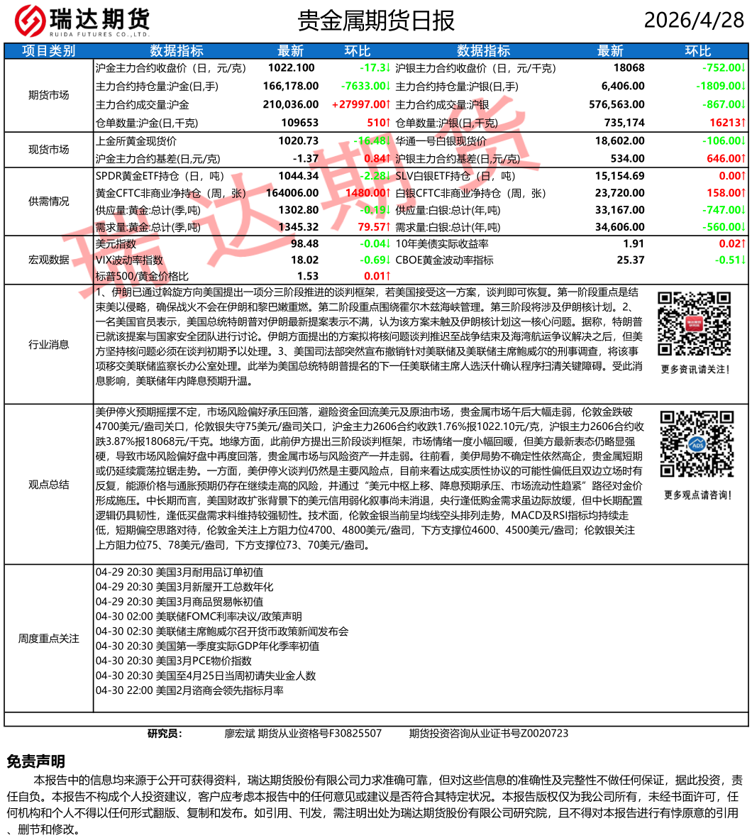 2026-04-28瑞达期货沪锡产业日报20260428