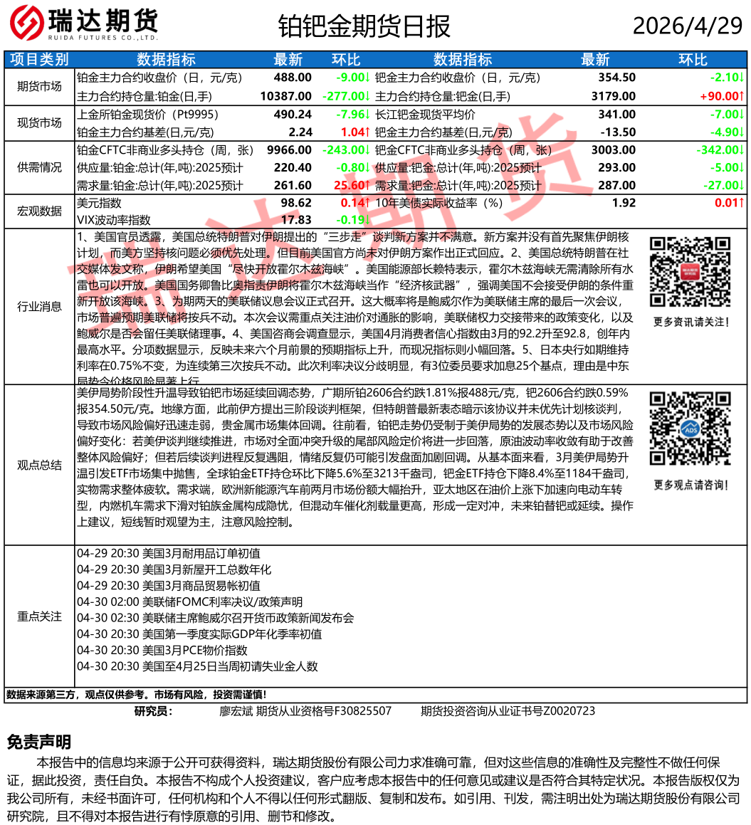 2026-04-29瑞达期货铂钯金市场每日全景分析报告 20260429