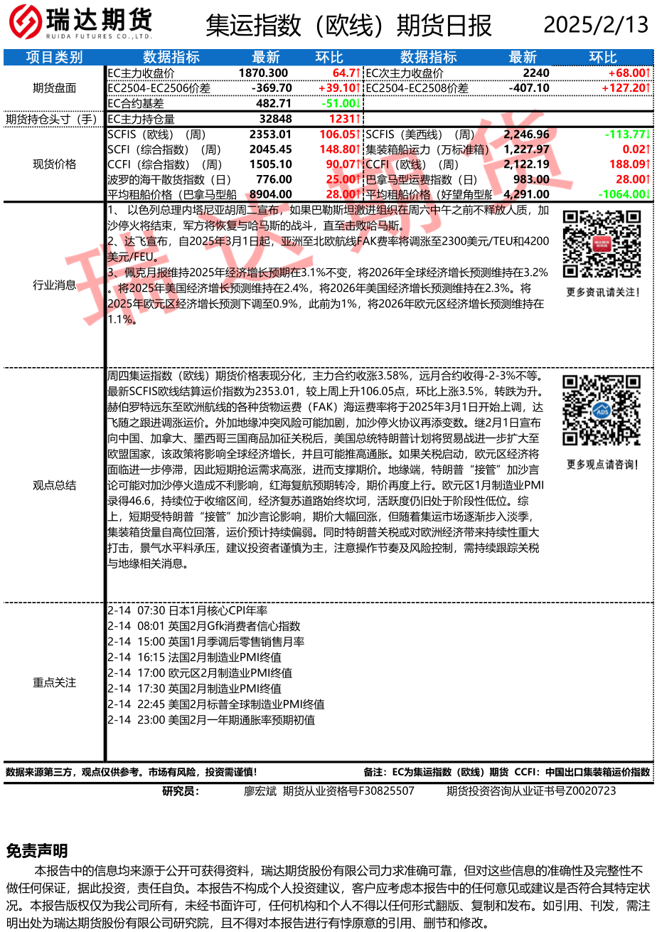 2026-02-12瑞达期货集运指数(欧线)期货市场每日全景分析报告20260212