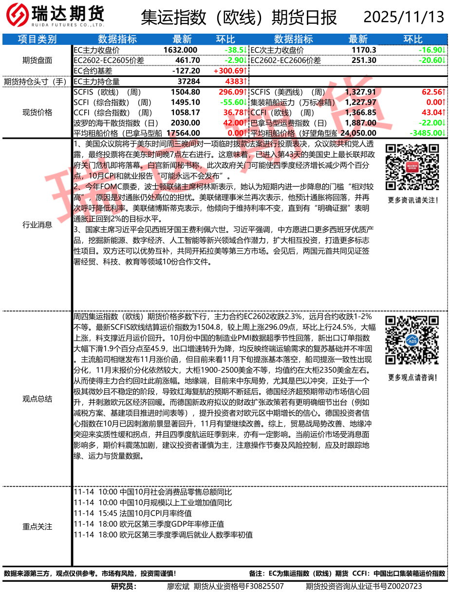 2026-02-12瑞达期货集运指数(欧线)期货市场每日全景分析报告20260212