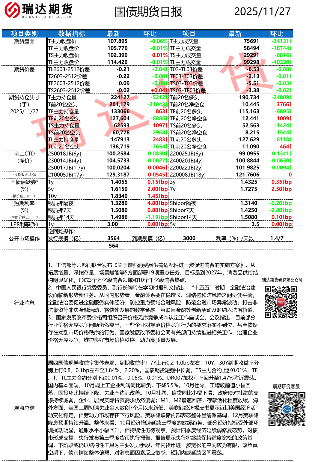 2025-12-04瑞达期货国债期货市场每日全景分析报告20251204