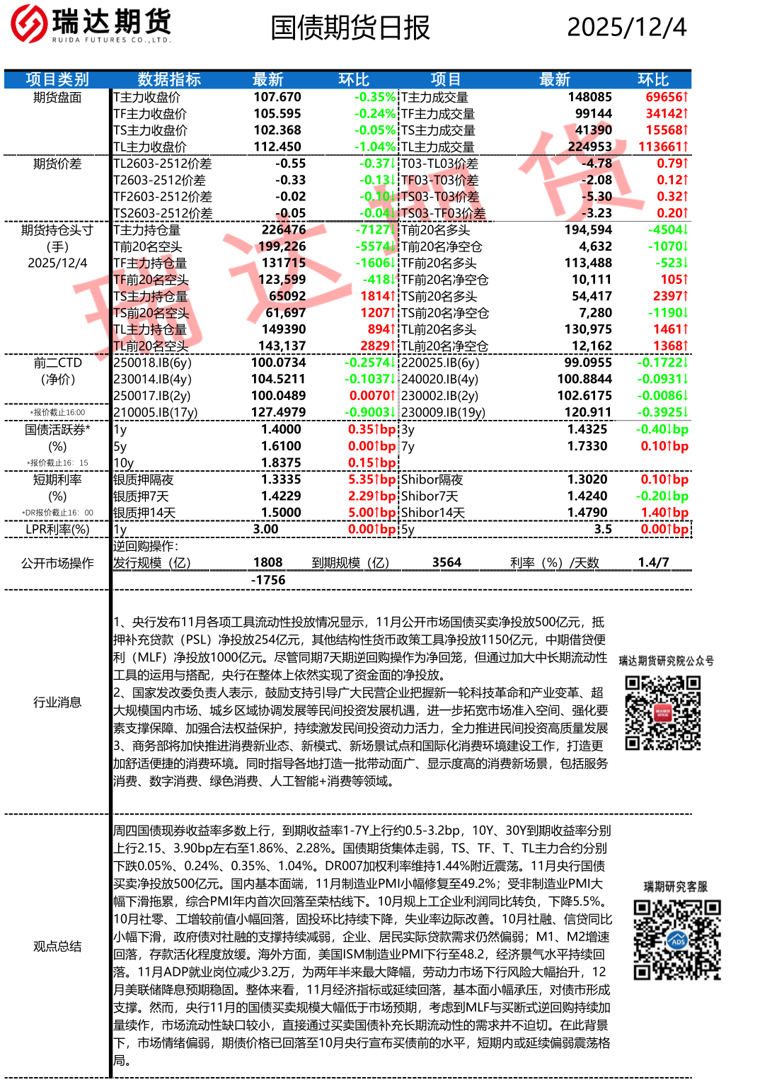 2025-12-04瑞达期货国债期货市场每日全景分析报告20251204