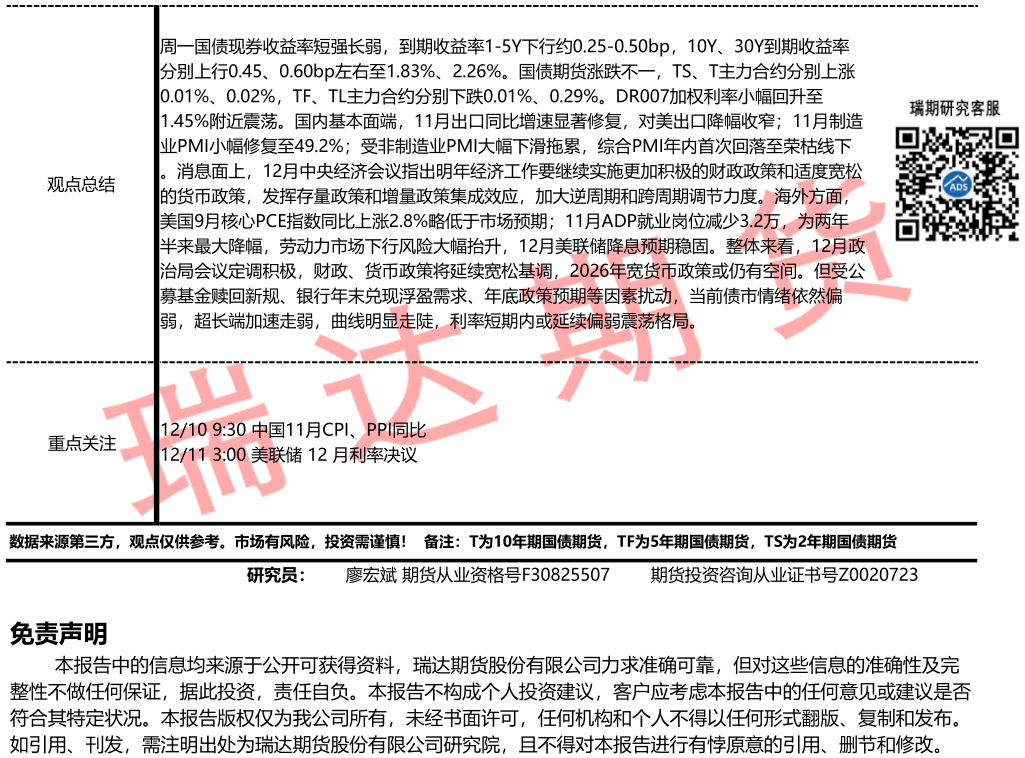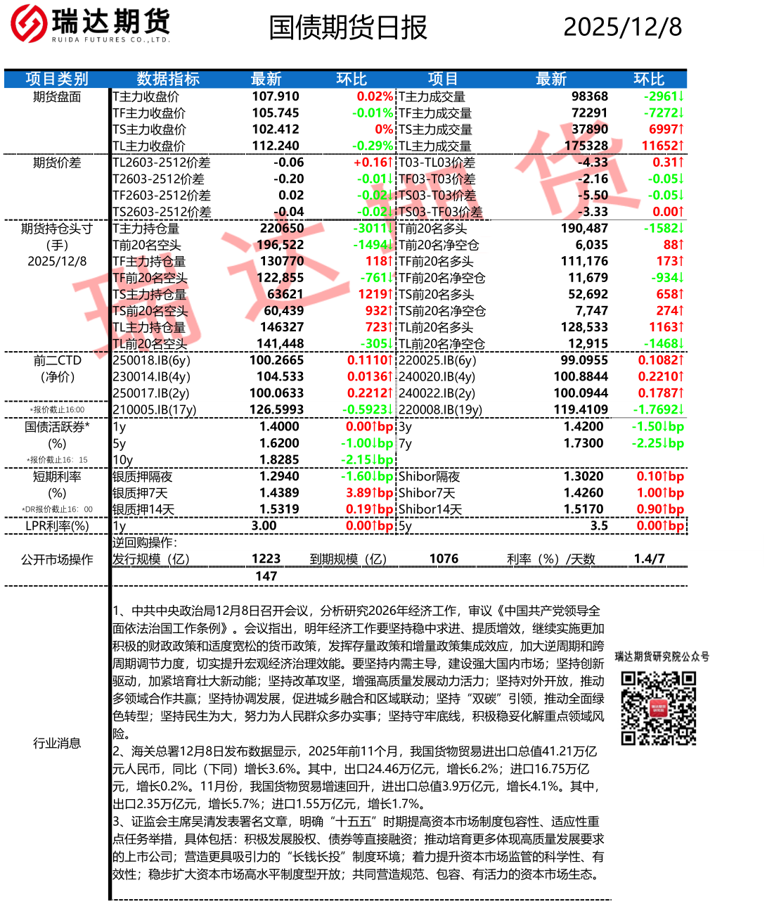 2025-12-08瑞达期货国债期货市场每日全景分析报告20251208