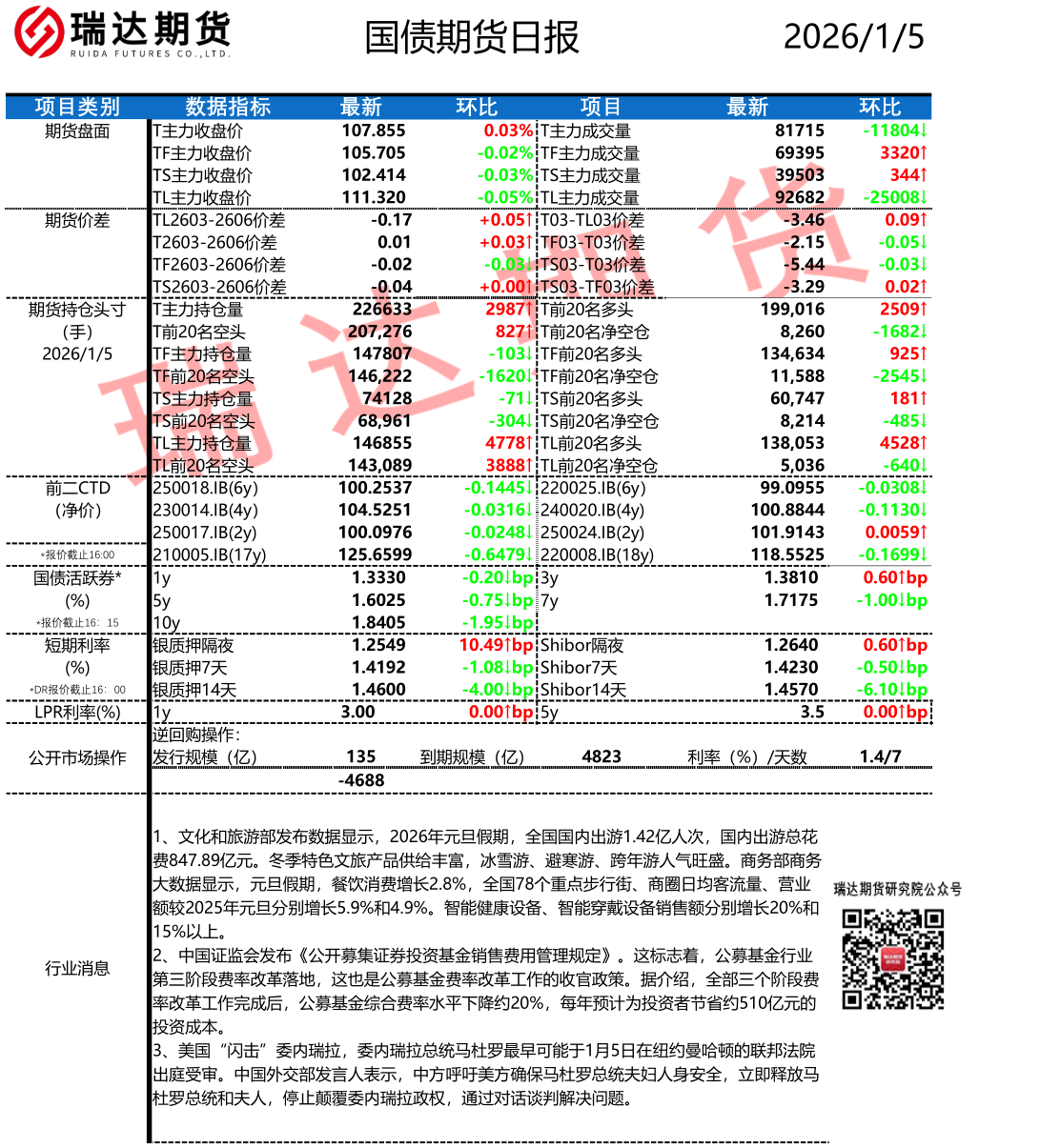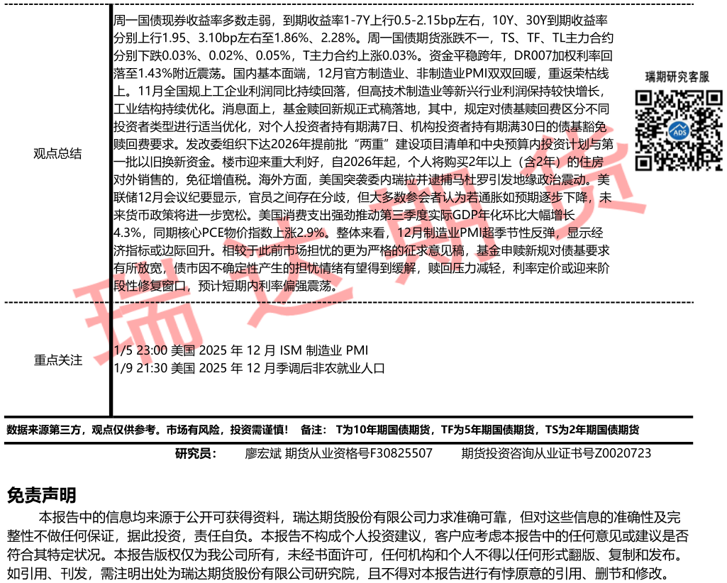 2026-01-08瑞达期货国债期货市场每日全景分析报告20260108