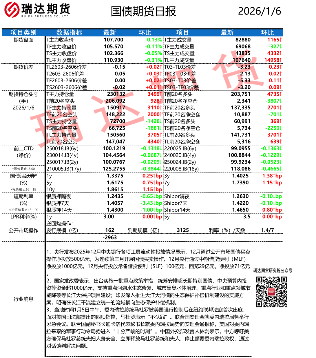 2026-01-08瑞达期货国债期货市场每日全景分析报告20260108