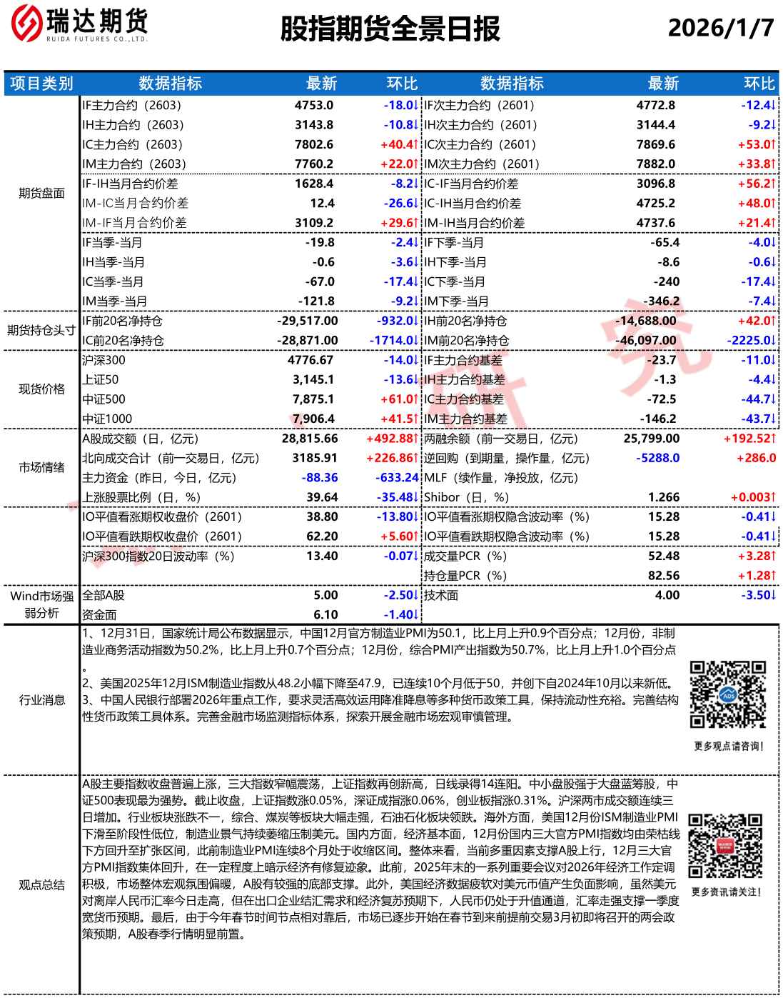 2026-01-08瑞达期货股指期货市场每日全景分析报告20260108