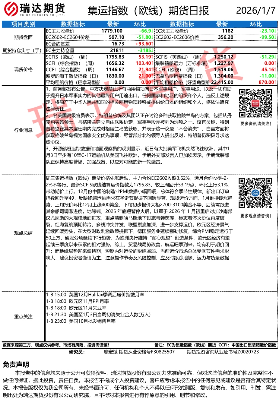 2026-01-08瑞达期货股指期货市场每日全景分析报告20260108