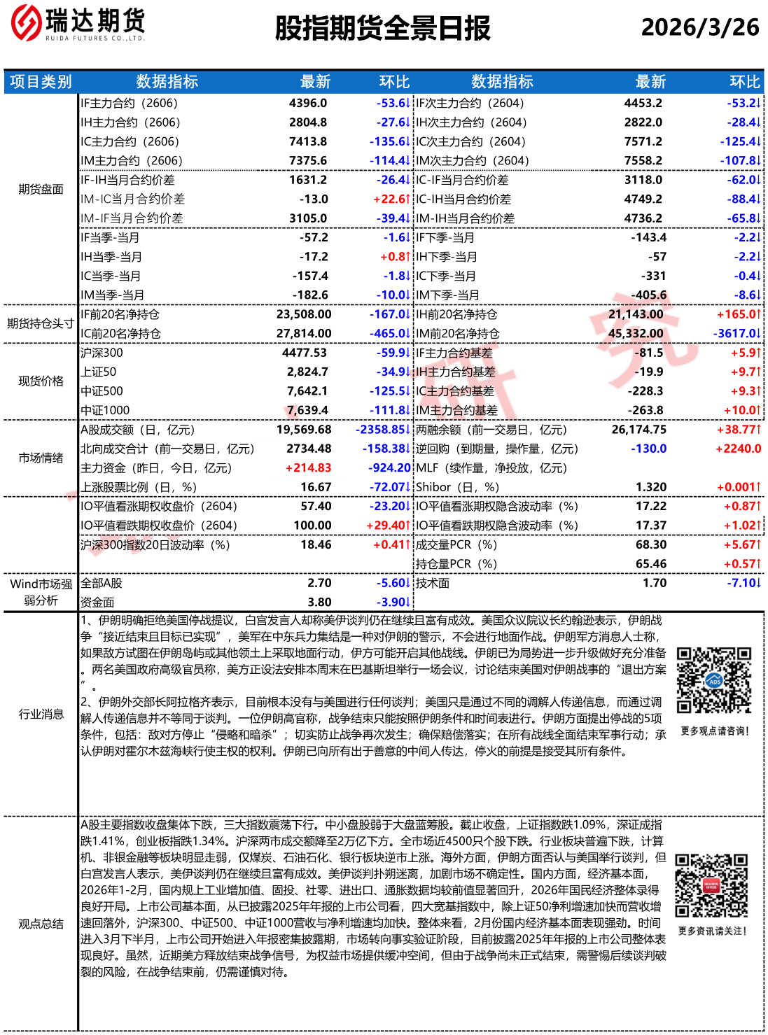 2026-04-16瑞达期货股指期货市场每日全景分析报告20260416
