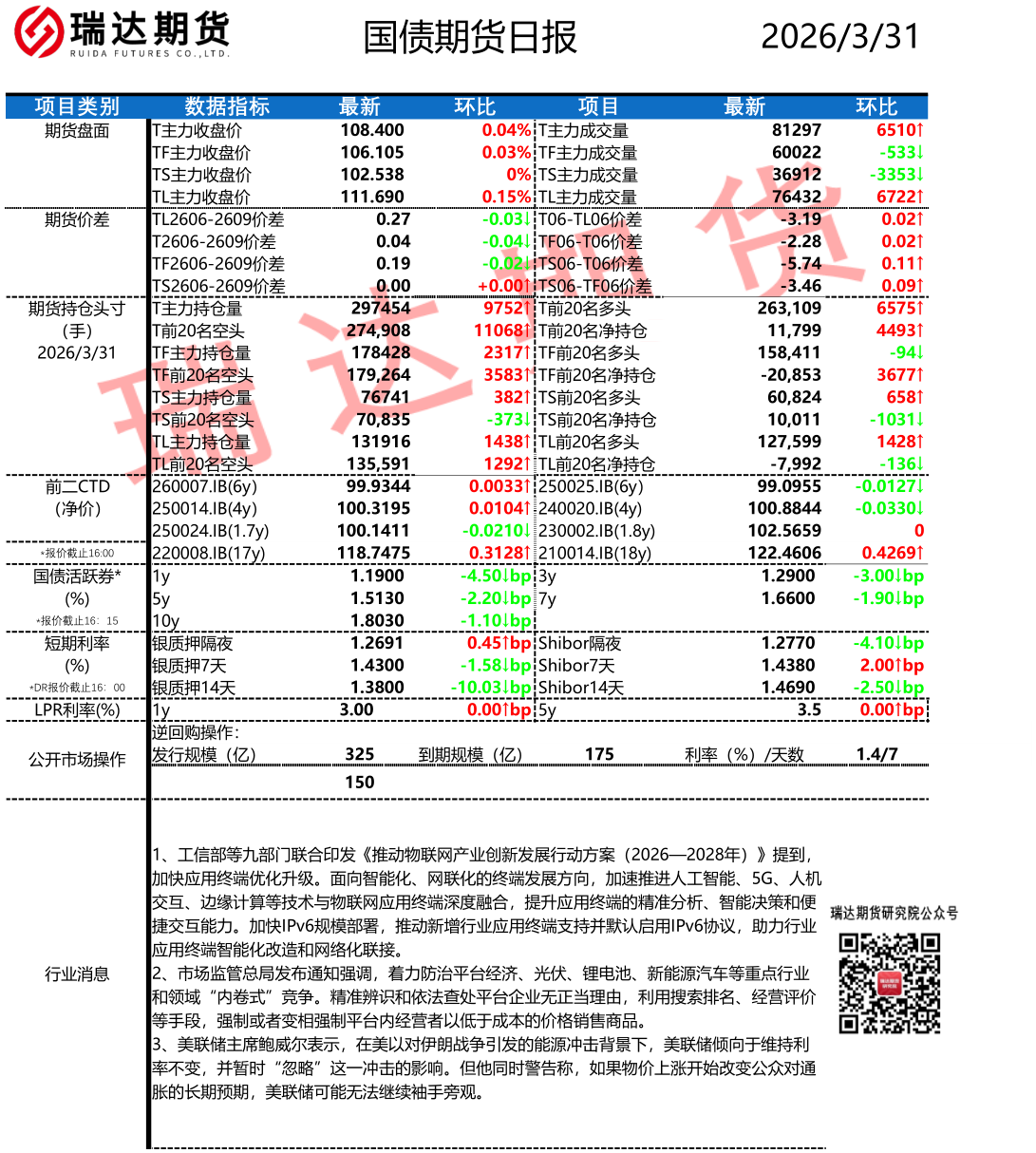 2026-03-31瑞达期货国债期货市场每日全景分析报告20260331