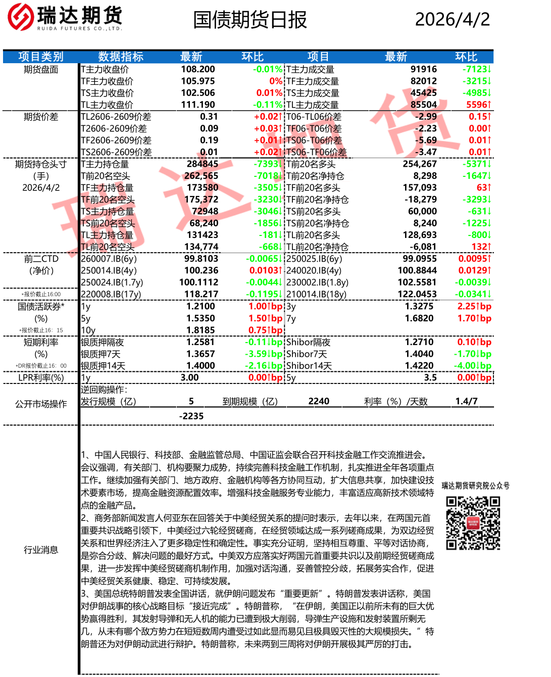 2026-04-02瑞达期货国债期货市场每日全景分析报告20260402
