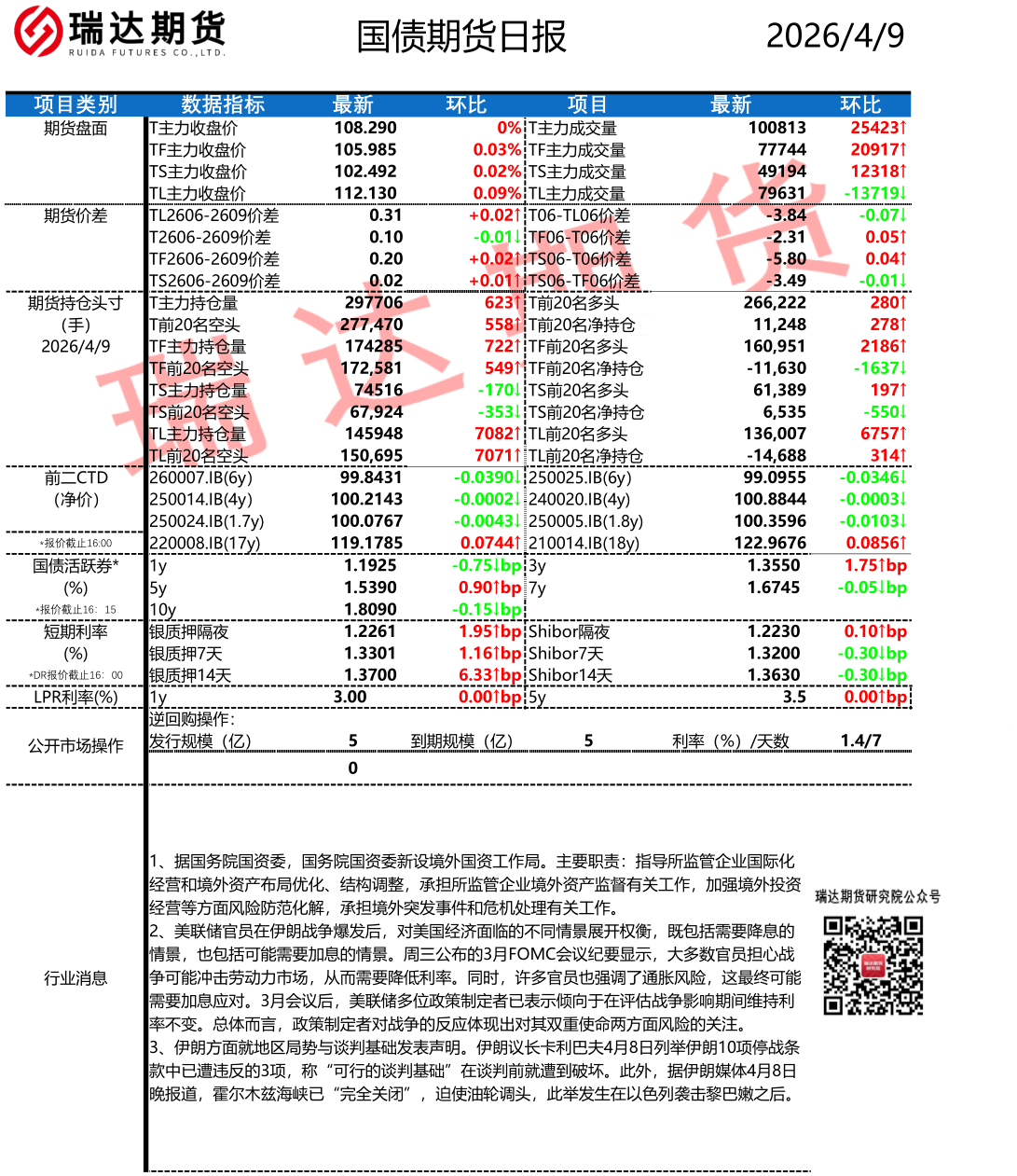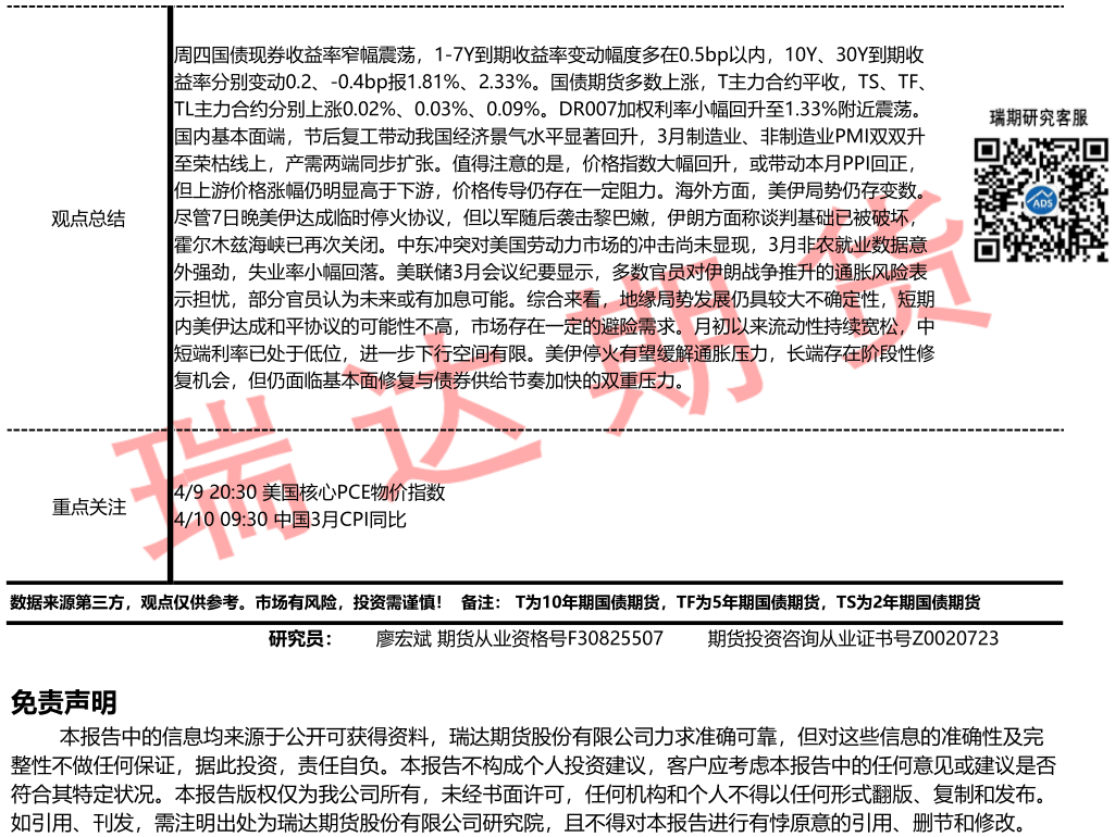 2026-04-09瑞达期货国债期货市场每日全景分析报告20260409