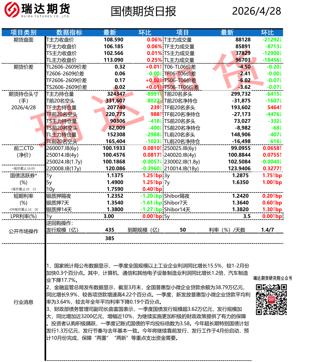 2026-04-28瑞达期货国债期货市场每日全景分析报告20260428