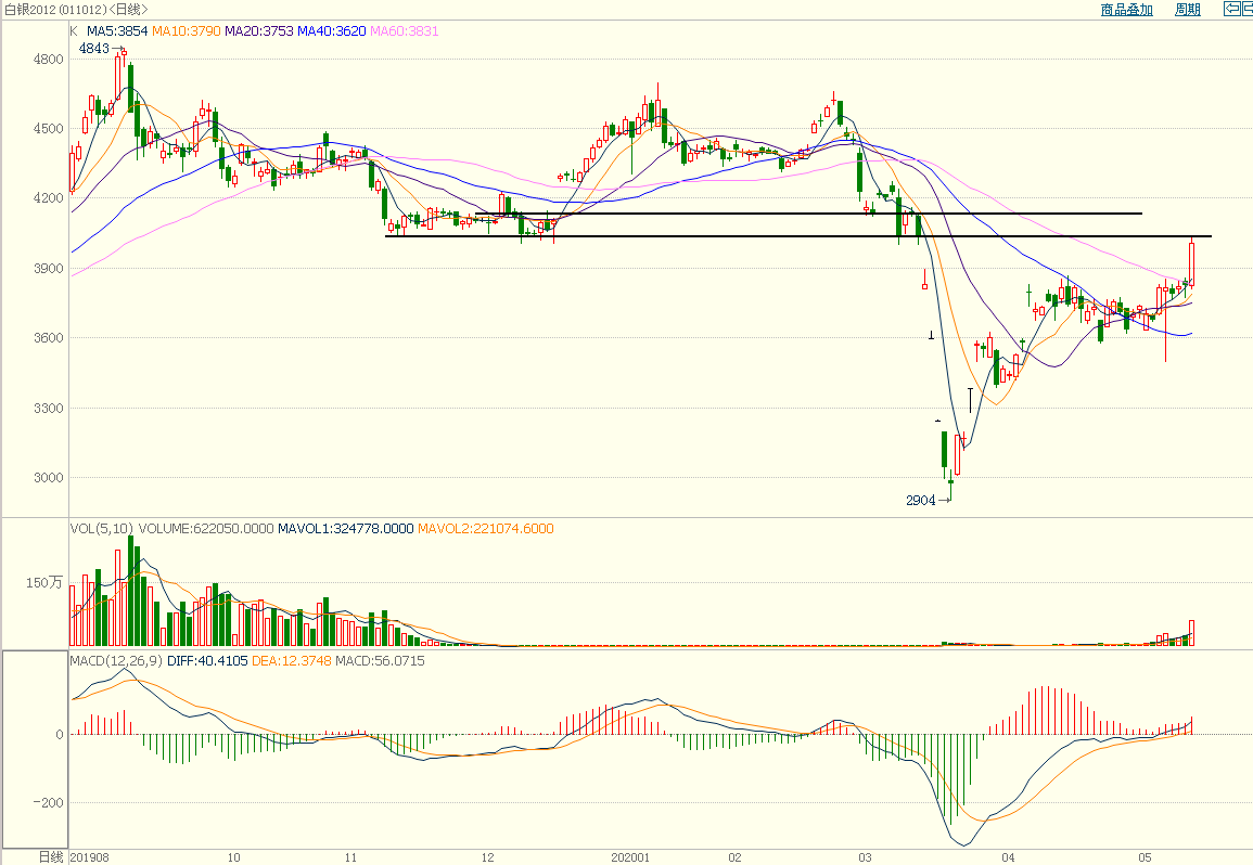 图二:白银——大幅上涨,突破60日均线压制