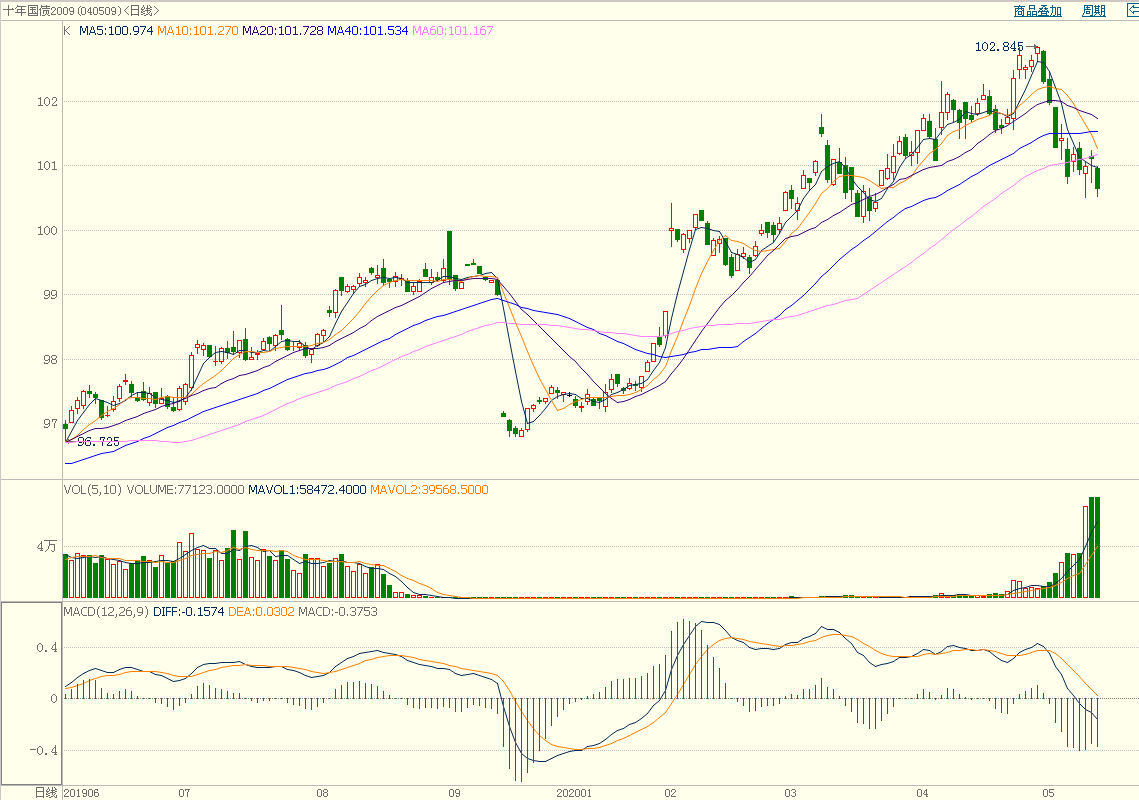 十债2009合约前几个交易日对此前持续下跌的超跌进行了反弹修正,不过总体上60日均线的压制比较明显,价格修正反弹后仍遭遇空头压制。MACD指标绿柱持续扩大,说明空头能量继续增强,DIFF继续下行,意味着价格已然步入空头势中。那么也就是说,价格已经从大多头势悄然反转。