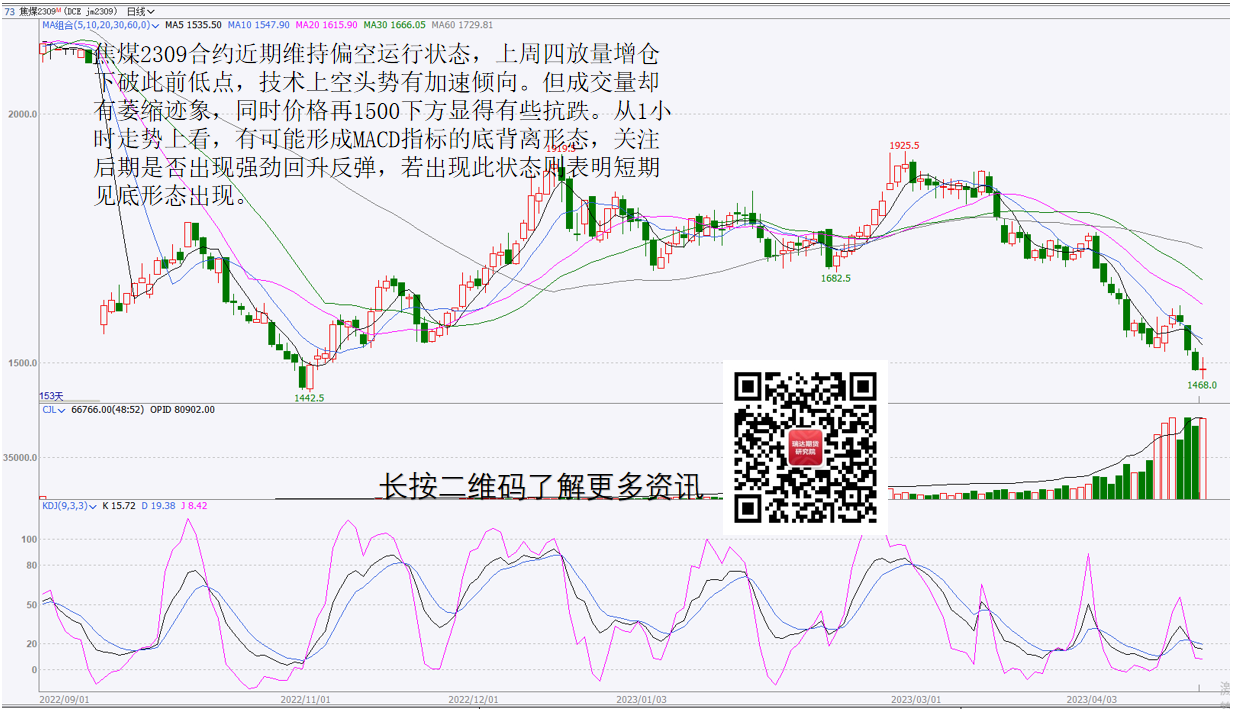 图一:焦煤——关注1小时走势是否形成MACD底背离